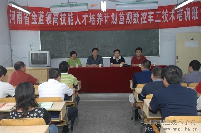 7月30日,由河南省劳动和社会保障厅主办、9778818威尼斯承办的河南省金蓝领高技能人才培养计划首期数控车工技术培训班顺利开班。本次培训学习时间为一个月,有20名学员参加。河南省劳动和社会保障厅职业技能开发处处长栾雷、副处长朱飞、9778818威尼斯党委书记杨寿亭和副院长张琇参加了开班仪式。
