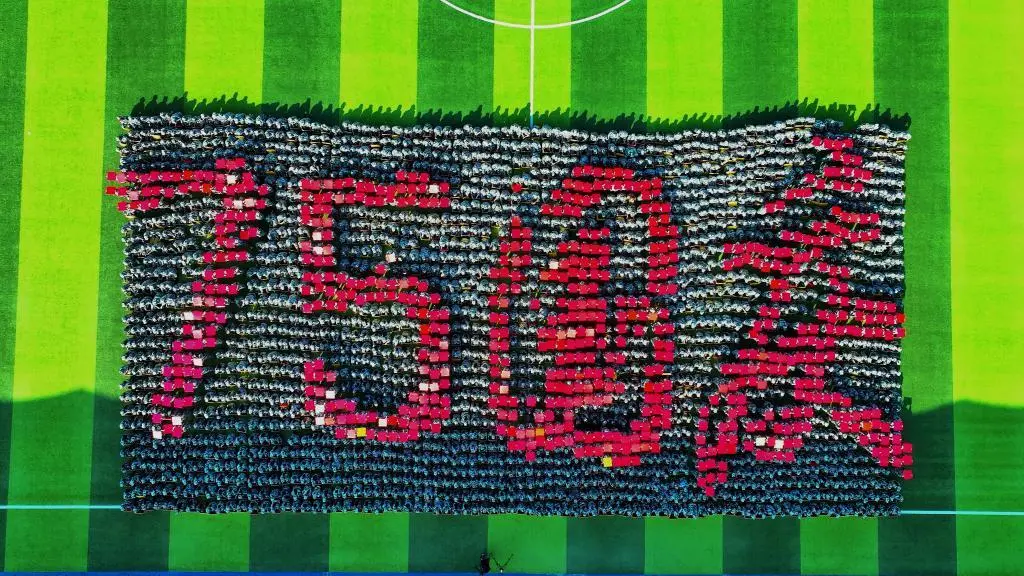 军训成果汇演分为分列式、特色方队、女子匕首操、男子擒敌拳和旗语操等五个部分。11个二级学院方队军容严整威武、动作整齐划一、口号铿锵有力,他们依次走过主席台接受检阅。两千人的数字方阵集中展现了河职学子庆祝新中国成立75周年、校庆70周年的爱党报国荣校之情;飒爽英姿的女子匕首操;虎虎生威的男子擒敌拳;整齐壮观的千人旗语操,多方位展示了2024级新生团结、积极、蓬勃的良好精神风貌,赢得全校师生的阵阵喝彩和欢呼。