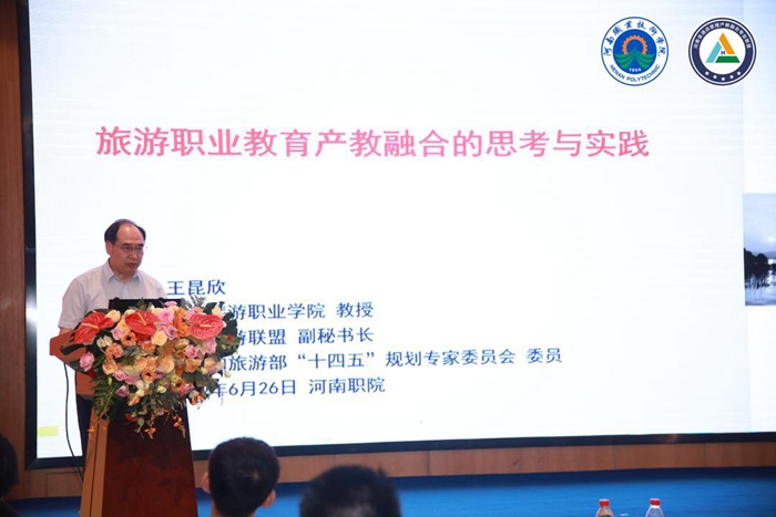 在大会主题分享阶段,学校领导为受聘专家颁发了聘书。王昆欣教授作了题为“旅游职业教育产教融合的思考与实践”的主题分享,他从职业教育产教融合的发展历程、特点与问题、要求与变化、实践与探索等四个方面,分享了旅游职业教育产教融合的思考与实践,受到了与会嘉宾的一致好评。(供稿:张沈玄思,审稿:陈佳平)