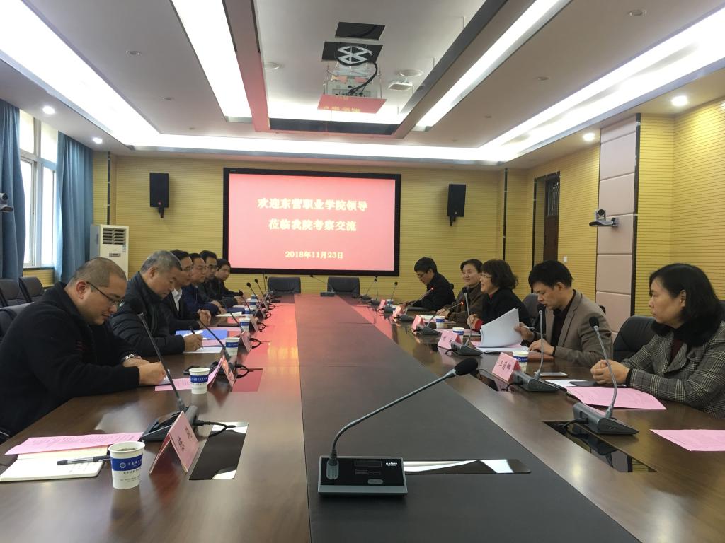 11月23日下午,东营职业学院党委委员、招生就业处处长张汝山一行7人来我校进行考察交流。学校副院长肖珑出席交流会。招生就业处、发展规划处、教务处、创业学院和信息中心等部门相关负责人在行政楼317会议室同来访客人进行了交流。